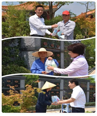 眼下正是一年中最热的时候,可天气的严酷没有让园区内的工作人员们望而却步,他们依然选择在岗位默默坚守。公司常务副总经理郑建平、党支部书记刘国荣、工会主席杨丽等领导深入一线,亲切看望在露天高温环境下工作的工人们,并为他们送去盐汽水、毛巾等防暑降温用品。