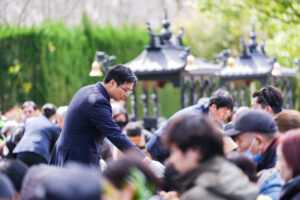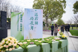 当天恰逢春分,昼夜均分、万物萌新,既是自然时序更迭的节点,也寓意着生命轮回、生生不息。在仪式的春分祈福三献礼环节,礼仪人员及园方代表敬献花环、供奉五谷、朗诵祭文,以中国传统礼仪致敬生命,共同缅怀远行的亲人。