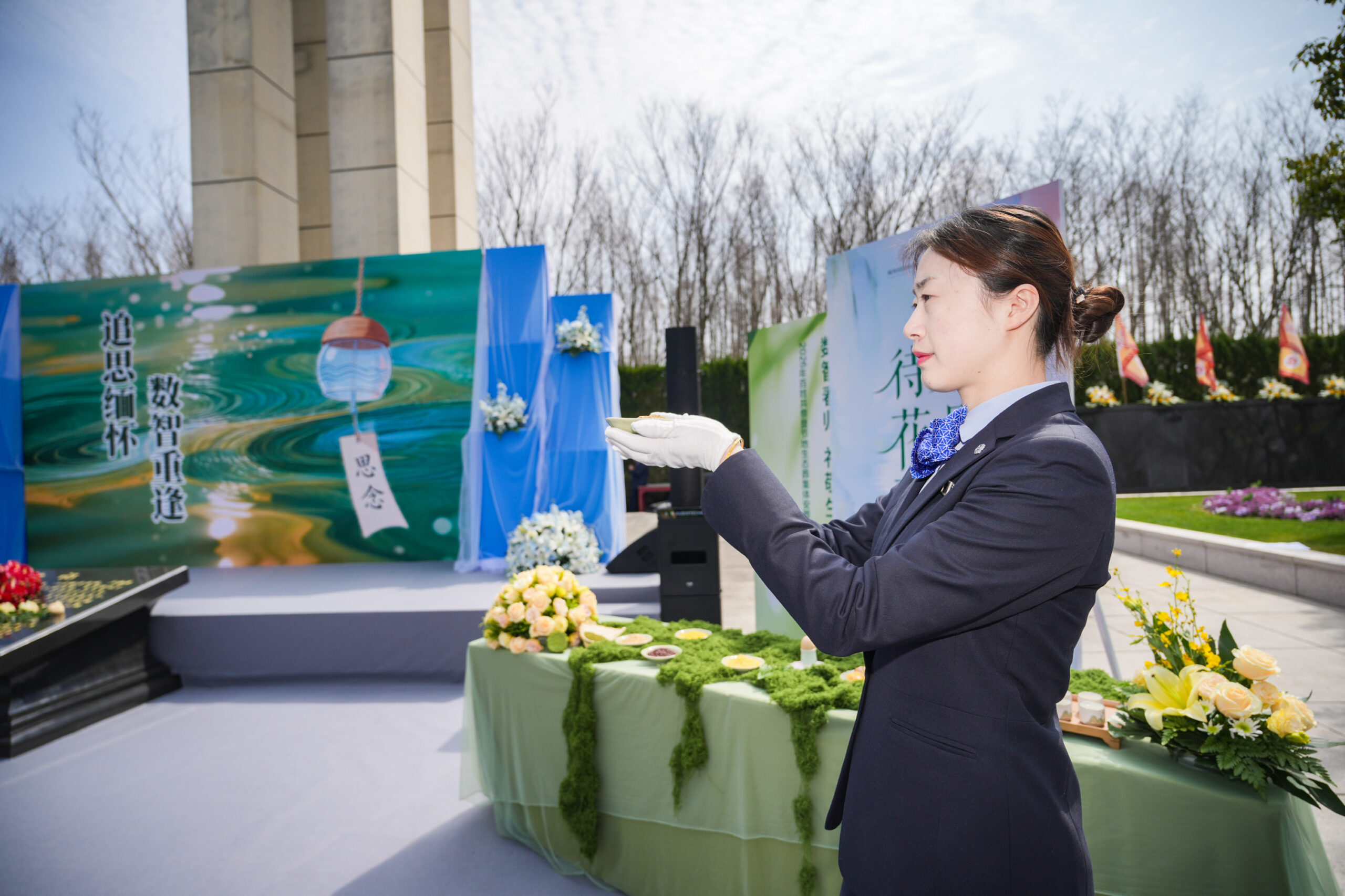 当天恰逢春分,昼夜均分、万物萌新,既是自然时序更迭的节点,也寓意着生命轮回、生生不息。在仪式的春分祈福三献礼环节,礼仪人员及园方代表敬献花环、供奉五谷、朗诵祭文,以中国传统礼仪致敬生命,共同缅怀远行的亲人。